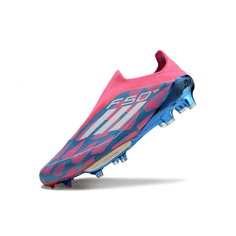 Zapatos Adidas F50+ Sin Cordones combinado con el empeine Fibertouch que incorpora una lengüeta envolvente con ajuste de compresión que proporciona mayor sujeción al pie.