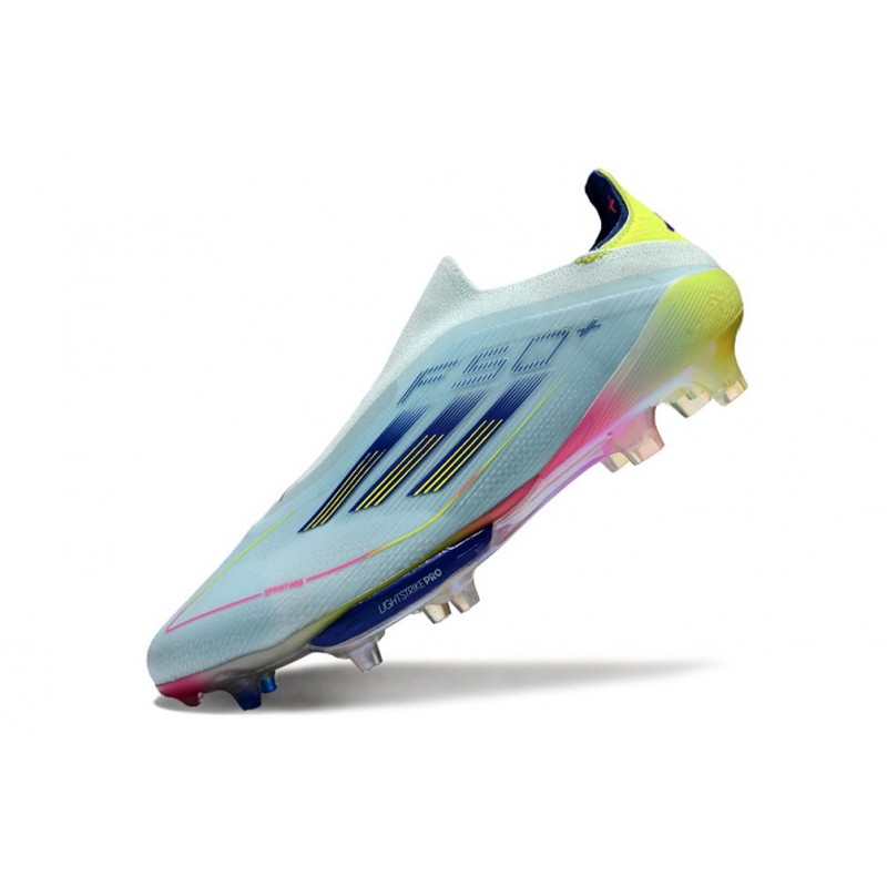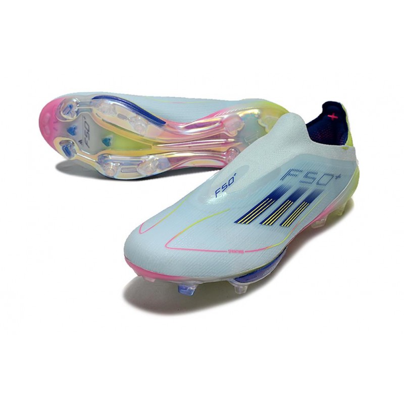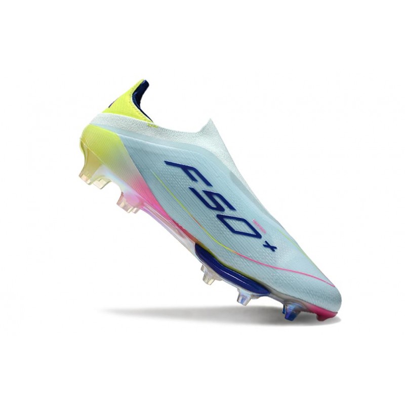 Zapatos Adidas F50+ Sin Cordones combinado con el empeine Fibertouch que incorpora una lengüeta envolvente con ajuste de compresión que proporciona mayor sujeción al pie.
